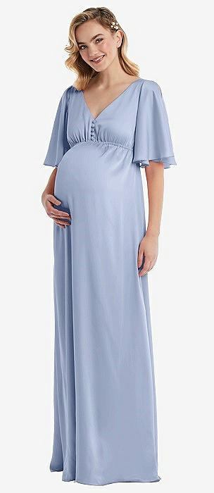 Flutter Bell Sleeve Empire Maternity Dress in sky blue