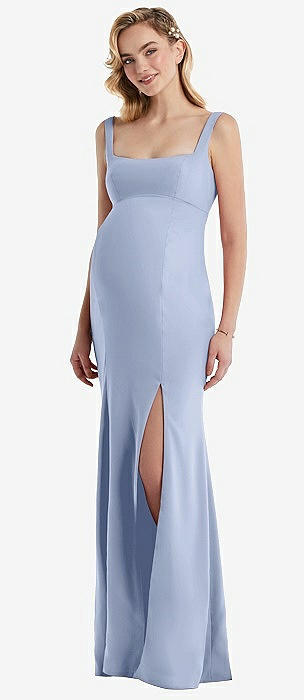 Wide Strap Square Neck Maternity Trumpet Gown in sky blue