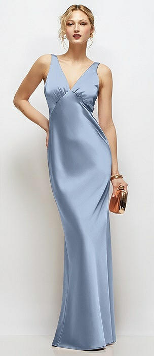 Sleeveless V-Neck Stretch Satin Bias Slip Maxi Dress in cloudy
