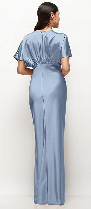 Plunge Neck Kimono Sleeve Satin Bias Maxi Dress in cloudy