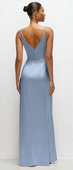 Sleeveless V-Neck Stretch Satin Bias Slip Maxi Dress in cloudy
