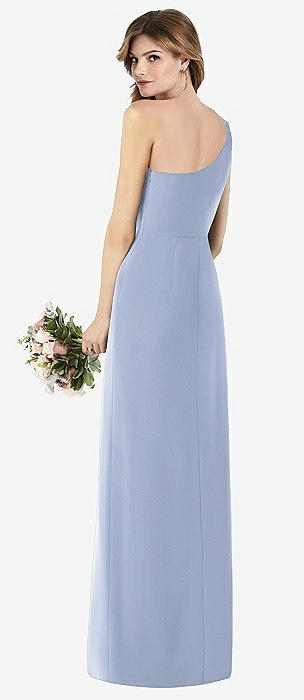 One-Shoulder Crepe Trumpet Gown with Front Slit in sky blue