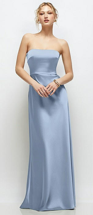 Strapless A-Line Stretch Satin Maxi Dress in cloudy