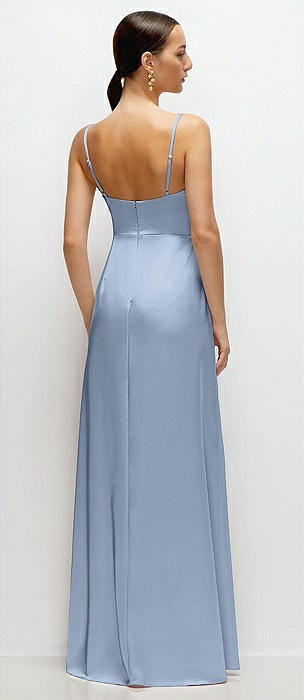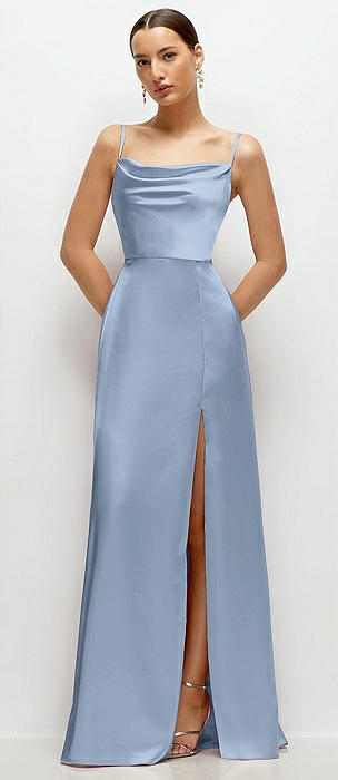 Cowl Neck Satin Maxi Dress with Adjustable Spaghetti Straps in cloudy