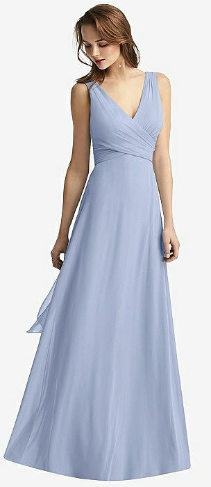 Sleeveless V-Neck Chiffon Wrap Dress in sky blue