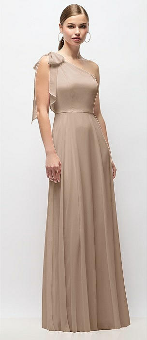 Bow One-Shoulder Satin Trumpet Gown in cognac