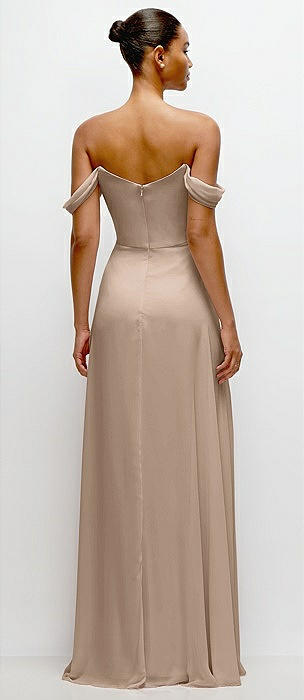 Off-the-Shoulder Draped Chiffon Maxi Dress in topaz