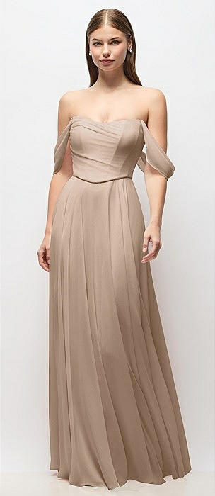 Off-the-Shoulder Basque Corset Chiffon Maxi Dress in topaz