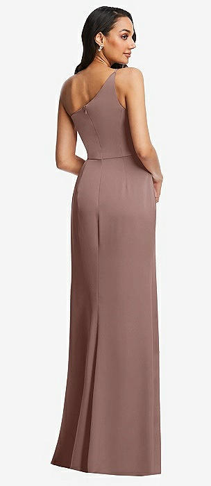 One-Shoulder Draped Twist Empire Waist Trumpet Gown in sienna