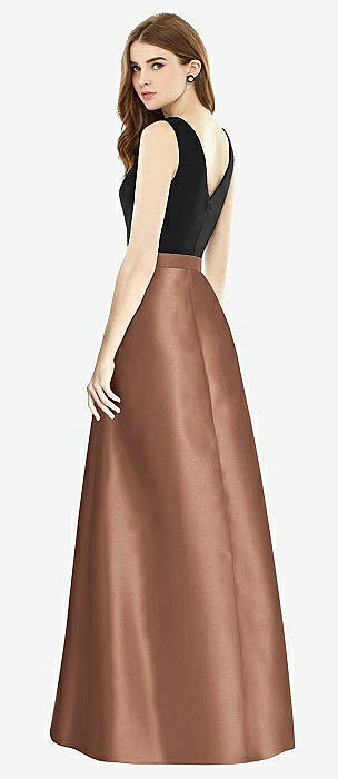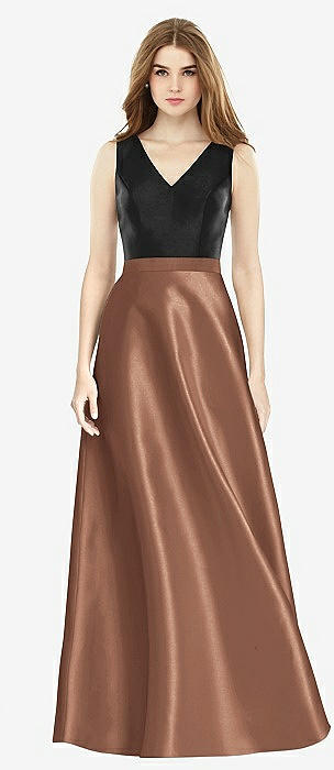 Sleeveless A-Line Satin Dress with Pockets in cognac