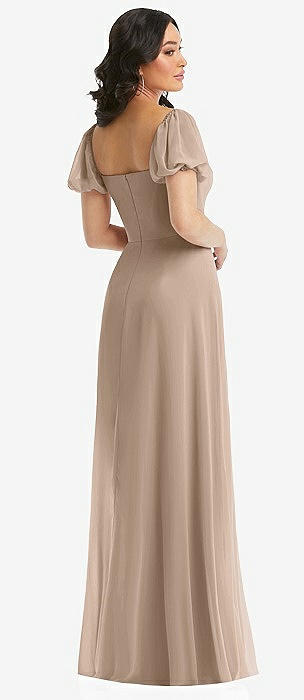 Puff Sleeve Chiffon Maxi Dress with Front Slit in topaz