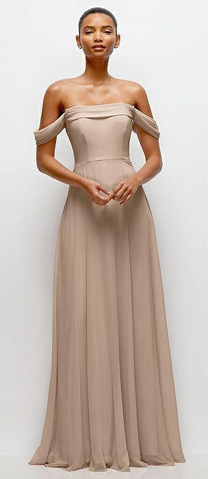Off-the-Shoulder Cuff Trumpet Gown with Front Slit in cognac