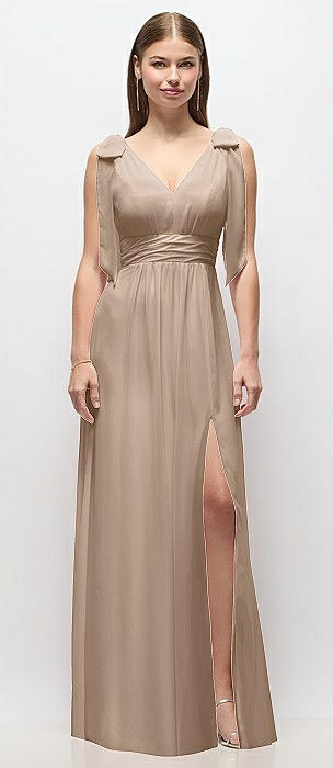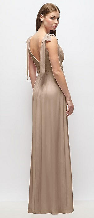 Tie Shoulder Empire Waist Junior Bridesmaid Dress in sienna