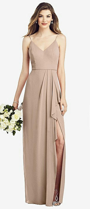 Spaghetti Strap Draped Skirt Gown with Front Slit in topaz