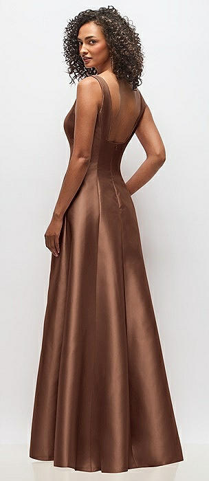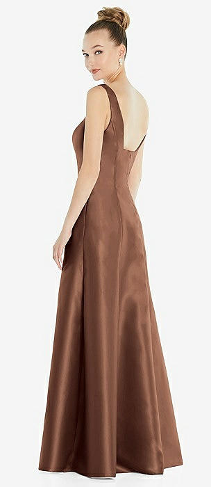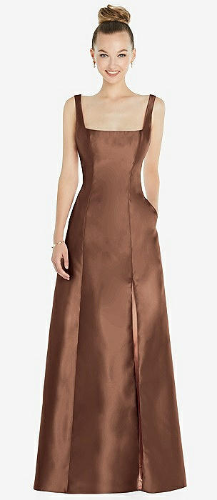 Sleeveless Square-Neck Princess Line Gown with Pockets in cognac