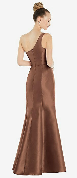 Bow One-Shoulder Satin Trumpet Gown in cognac