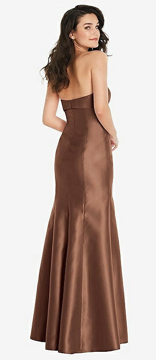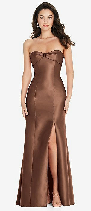 Bow Cuff Strapless Princess Waist Trumpet Gown in cognac