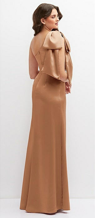 One-Shoulder Satin Maxi Dress with Chic Oversized Shoulder Bow