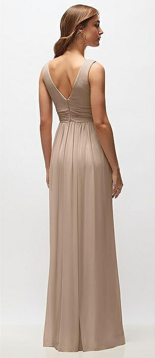 Sleeveless Draped Chiffon Maxi Dress with Front Slit in topaz