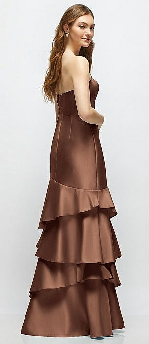 Strapless Bodycon Maxi Dress with Tiered Ruffle Skirt in cognac