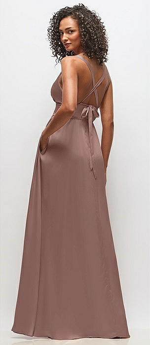 Sleeveless V-Neck Stretch Satin Bias Slip Maxi Dress in toffee