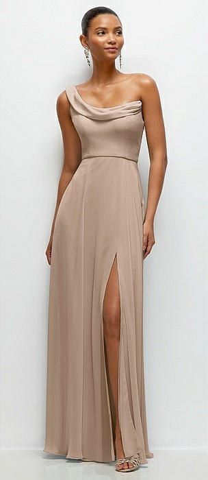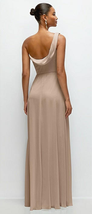 Chiffon One-Shoulder Maxi Dress with Draped Cowl Neckline in topaz