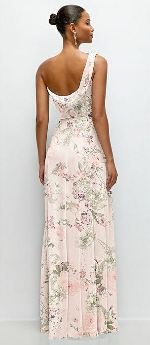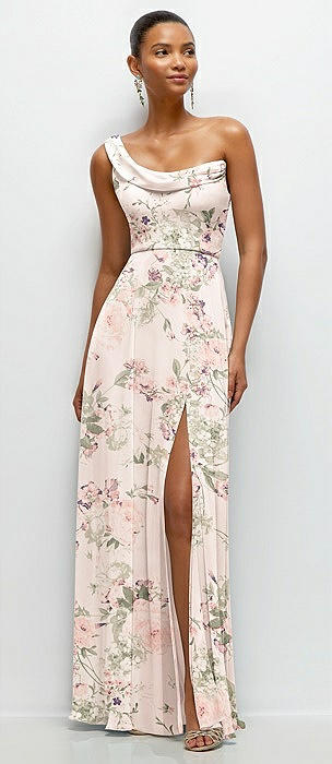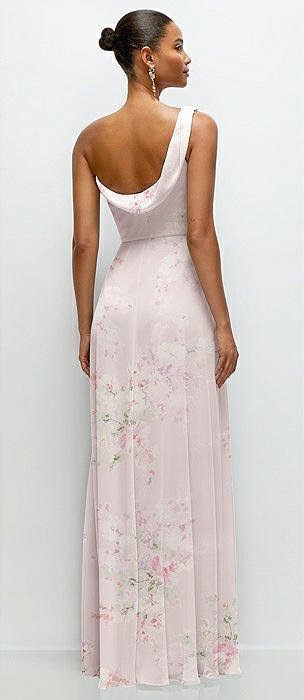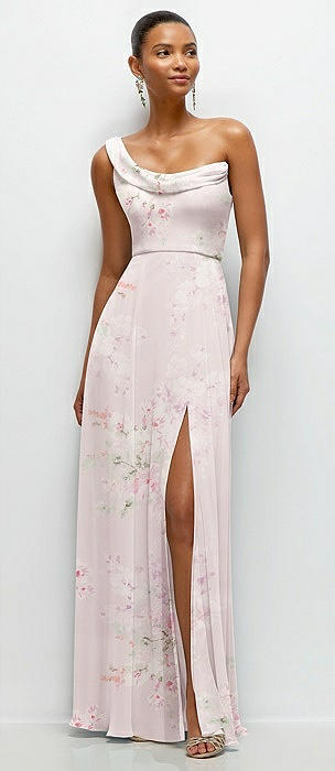 Chiffon One-Shoulder Maxi Dress with Draped Cowl Neckline in blush garden