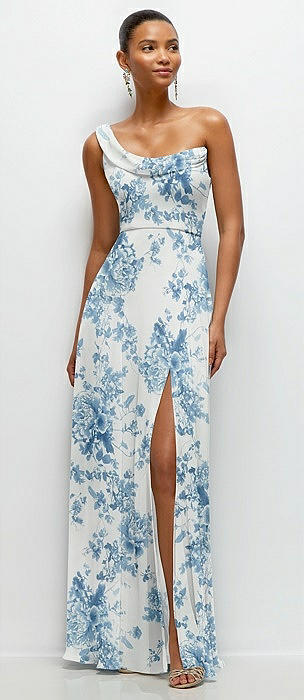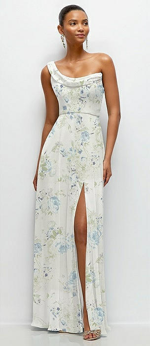 Chiffon One-Shoulder Maxi Dress with Draped Cowl Neckline in coquette floral print