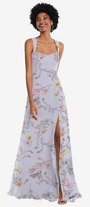 Convertible Ruffle Strap Chiffon Maxi Dress with Full Circle Skirt in butterfly botanica silver dove
