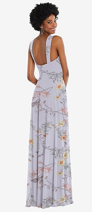 Cowl Neck Chiffon Maxi Dress with Hand-Worked Petal Straps in butterfly botanica silver dove