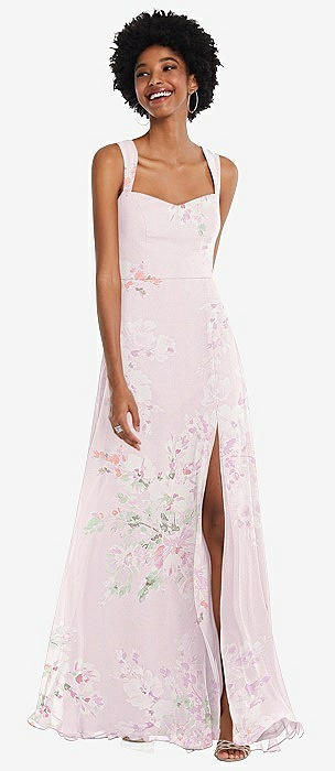 Contoured Wide Strap Sweetheart Maxi Dress in blush garden