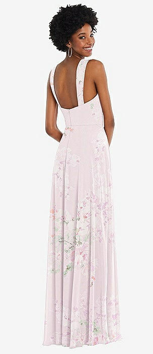 Cowl Neck Chiffon Maxi Dress with Hand-Worked Petal Straps in blush garden