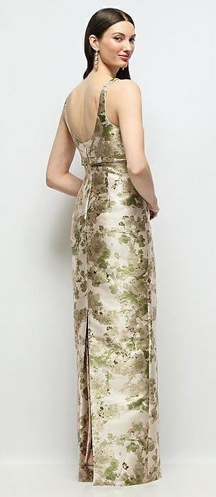 Scoop Neck Abstract Floral Jacquard Column Maxi Dress with Bow Empire Waist in peridot blush