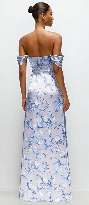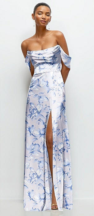 Floral A-Line Satin Maxi Dress with Convertible Off-the-Shoulder or Strapless Looks in magnolia sky