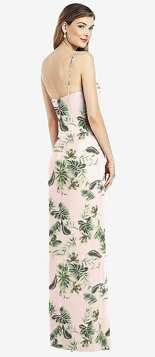 Spaghetti Strap Draped Skirt Gown with Front Slit in palm beach print