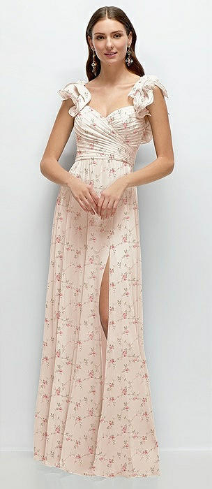 Asymmetrical Ruffle Chiffon Bias Slip Maxi Dress in coquette floral print