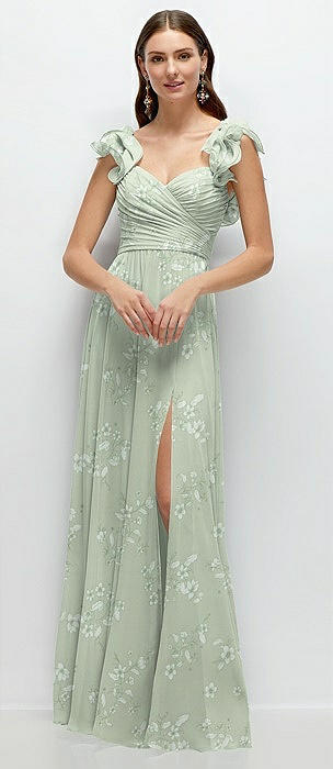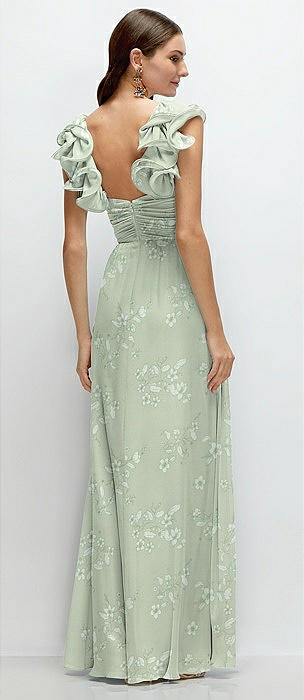 Dramatic Ruffle Edge Strap Chiffon Maxi Dress in vintage primrose sage