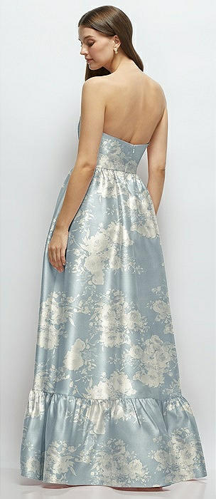 Strapless Cat-Eye Boned Bodice Brocade High-Low Dress in winter mist