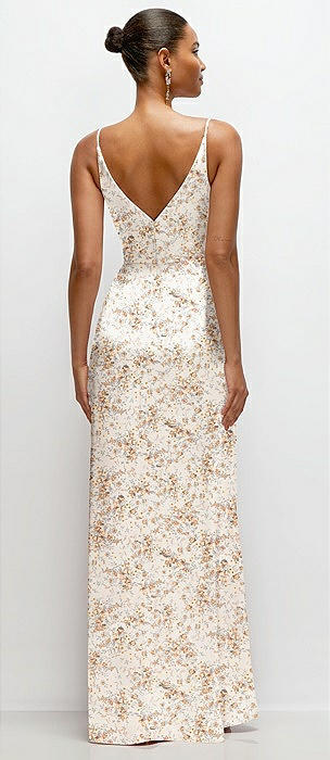 Spaghetti Strap Draped Skirt Gown with Front Slit in butterfly botanica silver dove