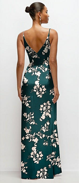 Spaghetti Strap Draped Skirt Gown with Front Slit in mint green floral