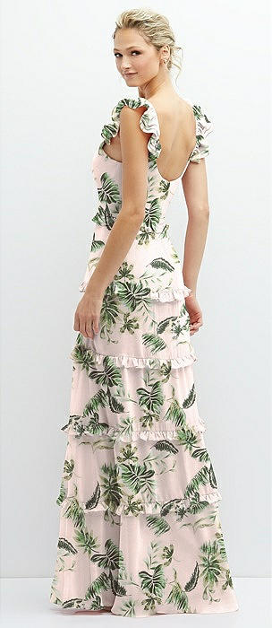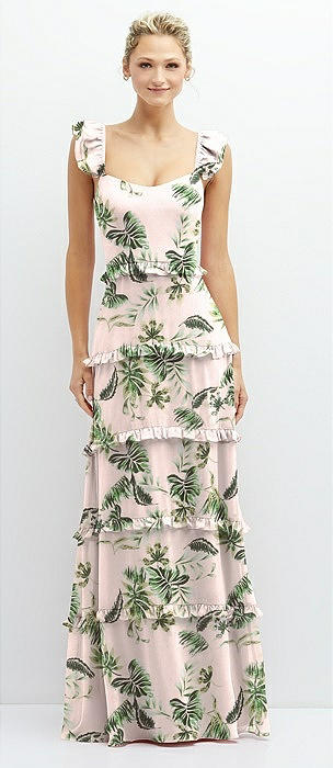 Tiered Chiffon Maxi A-line Dress with Convertible Ruffle Straps in palm beach print