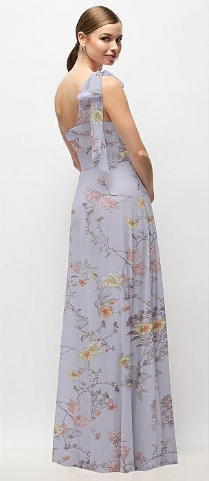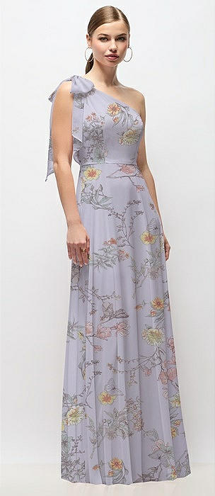 Chiffon One-Shoulder Maxi Dress with Circle Skirt in butterfly botanica silver dove