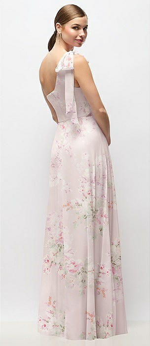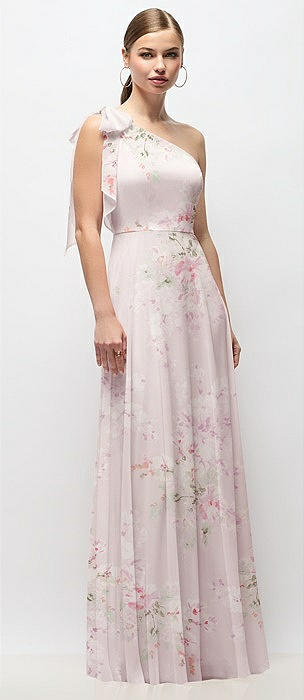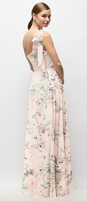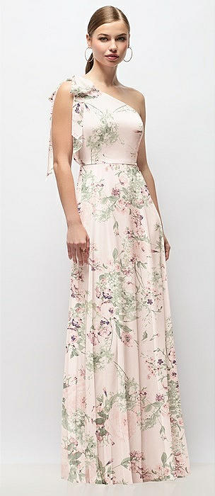 Draped One-Shoulder Maxi Dress with Scarf Bow in blush garden