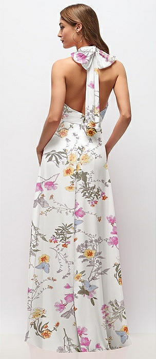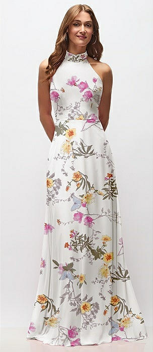 High Neck Halter Backless Maxi Dress in butterfly botanica ivory