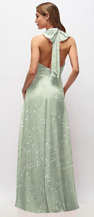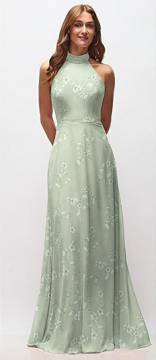 High Neck Halter Backless Maxi Dress in vintage primrose sage
