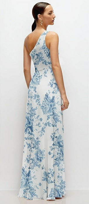 Chiffon One-Shoulder Maxi Dress with Circle Skirt in cottage rose dusk blue