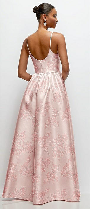 Scoop Neck Drop Basque Skirt Floral Satin Maxi Dress with Pockets in bow and blossom print