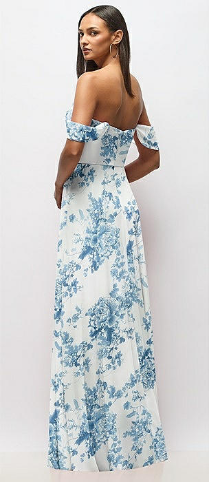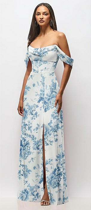 Chiffon Corset Maxi Dress with Removable Off-the-Shoulder Swags in bleu garden