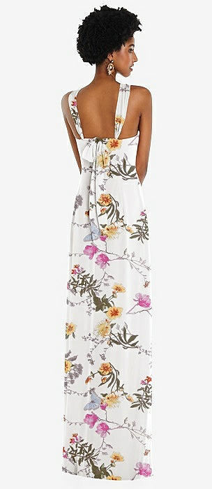 Draped Chiffon Grecian Column Gown with Convertible Straps in butterfly botanica ivory