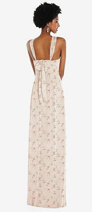 Draped Chiffon Grecian Column Gown with Convertible Straps in coquette floral print